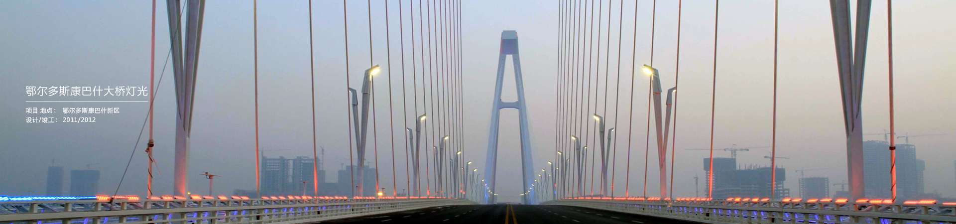 鄂爾多斯康巴什大橋(烏蘭木倫河4號橋)位于康巴什新區烏蘭木倫河下段河道,橋梁全長1005米,主橋長800米,主跨為450米的雙塔雙索斜拉橋,橋寬37米,塔高129米,主跨和主塔采用鋼結構,邊跨和引橋采用混凝土箱梁結構,共有斜拉索68對,屬于國內大型斜拉橋。為更好的表現景觀效果,我們為康巴什大橋特別設計了一款大型景觀燈具,馬燈。